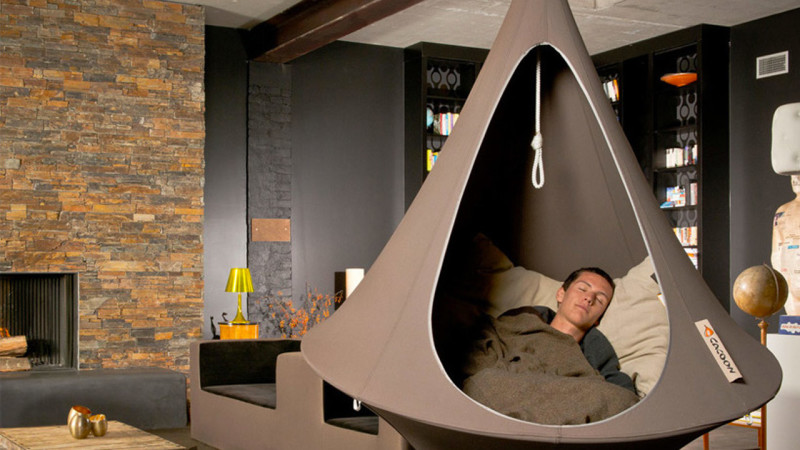 En voici un qui a bien compris le principe. Ce n'est pas une tente pour faire de la balançoire, mais pour s'y blottir et faire une petite sieste, tranquille, loin du tumulte du monde. Qui voudrait en faire de même ?